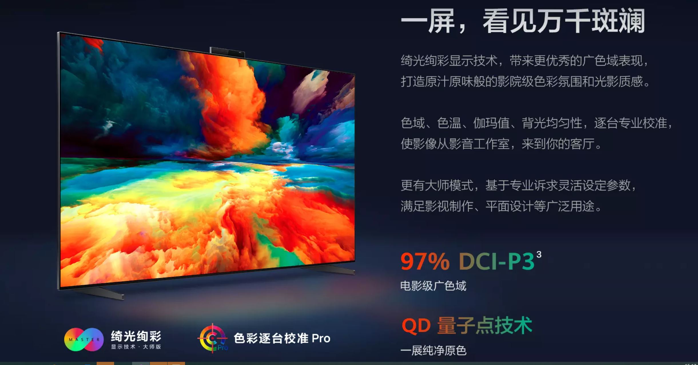 2021年7月,華為正式發布新一代智慧屏產品V 75 Super。該款產品同步搭載了原色量子點顯示技術和Mini LED精密背光驅動技術,屏幕色域高達97% DCI-P3,打造原汁原味般的影院級色彩氛圍和光影質感。